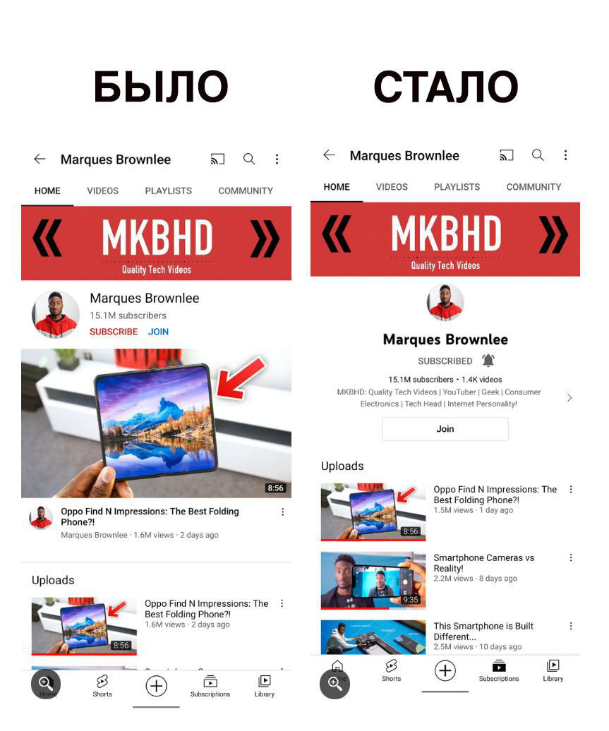 В редизайне аватарка профиля сместится в центр страницы, а название канала будет располагаться прямо под ней. Кнопка «Подписаться» и счётчик количества подписчиков сохранятся.